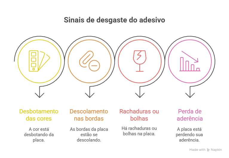Mesmo com todos os cuidados, o adesivo em recorte eletrônico apresenta sinais de desgaste com o tempo. Fique atento a: